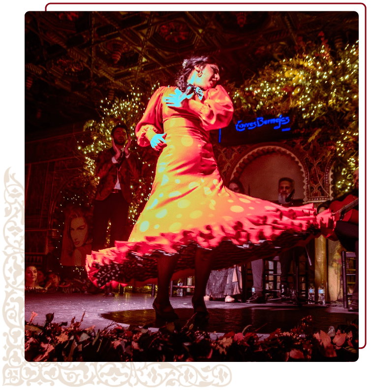 Vive la pasión del auténtico flamenco en Torres Bermejas, donde artistas de primer nivel actúan en directo cantando y bailando en un impresionante local inspirado en la Alhambra de Granada. Cada temporada ofrece diferentes espectáculos, lo que garantiza que cada visita sea una experiencia única e inolvidable.